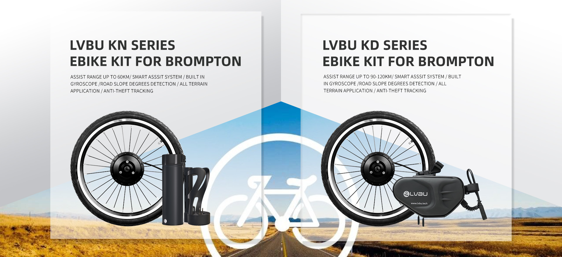 Lvbu KN series brompton electric conversion kit and KD series brompton e bike kit, designed specifically for Brompton folding bikes, offer a smart electric assist ebike conversion solution tailored for compact commuting. The series includes three main models — KN20S brompton electric kit, KD30S brompton electric conversion kit, and KD40S swytch brompton kit— each featuring different ebikeling battery configurations: a 36V 6Ah bottle battery, a 36V 9Ah saddle bag battery, and a 36V 12Ah high-capacity saddle bag battery. With a charging time of about 3~6 hours, these options cover a wide range of needs, from daily short-distance commuting to long weekend rides.