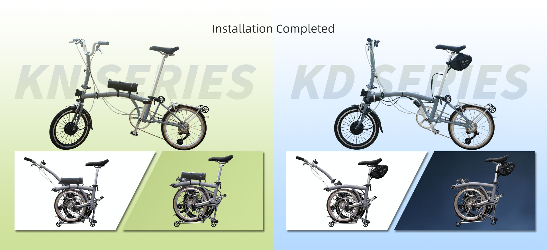 With these advantages, the KN/KD series brompton conversion kit preserves the portability and folding convenience of Brompton bikes while offering a performance level close to that of a full-featured e-bike. Whether choosing the bottle-style battery for lightweight commuting or the saddle-bag version for extended rides, users can freely customize their setup — achieving the perfect balance between convenience, endurance, and power in the era of intelligent folding mobility.