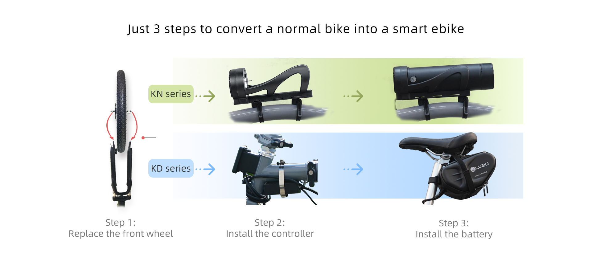 Range: Up to 60 km with the KN20S bottle battery ebike conversion kit under standard test conditions; the saddle bag batteries KD30S and KD40S extend range to 90–120 km, ideal for long-distance commuting.